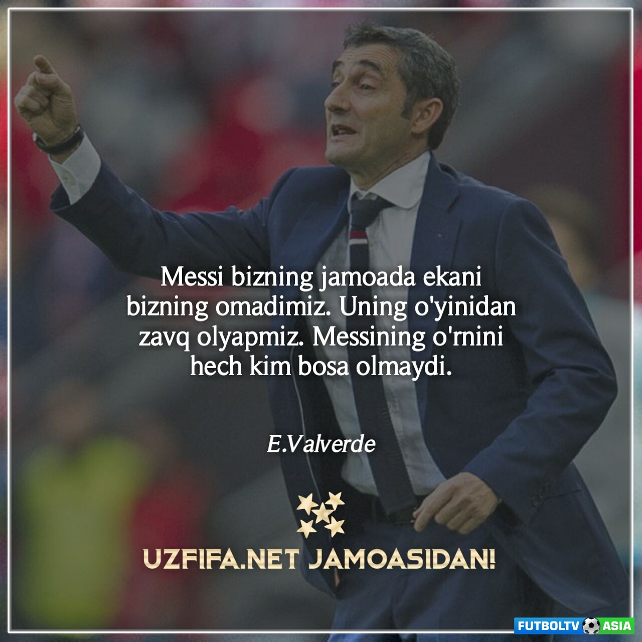 Messi bizning jamoada ekani bizning omadimiz. Uning o'yinidan zavq olyapmiz. Messining o'rnini hech kim bosa olmaydi. Ernesto Valverde Yuklab olish (1760) |