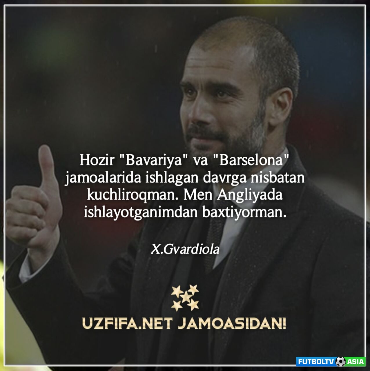 Hozir "Bavariya" va "Barselona" jamoalarida ishlagan davrga nisbatan kuchliroqman. Men Angliyada ishlayotganimdan baxtiyorman. Xosep Gvardiola Yuklab olish (1986) |
