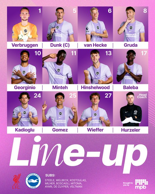 Angliya Premer-ligasi 16-turidan o'rin olgan "Liverpul" - "Brayton" bellashuvi asosiy tarkiblari ma'lum.