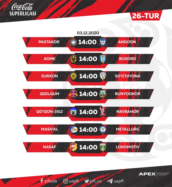 3 dekabr kuni Superligada so'nggi, 26-tur o'yinlari bo'lib o'tadi. Tur doirasidan o'rin olgan barcha bellashuvlar 14:00 da start oladi.